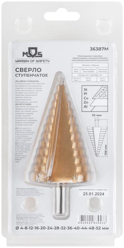 Сверло ступенчатое HSS по металлу 13 ступеней 4-8-12-16-20-24-28-32-36-40-44-48-52мм MOS 36387М