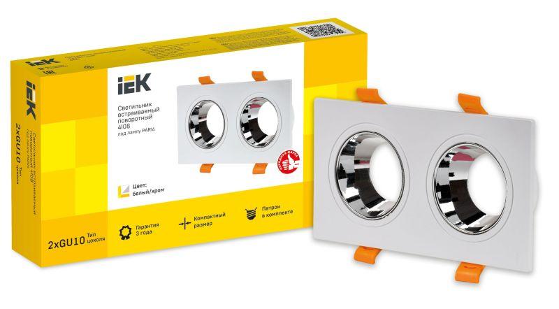Светильник 4108 встраиваемый поворотный 2хGU10 бел./хром пласт. IEK LT-UVB0-4108-GU10-2-K23