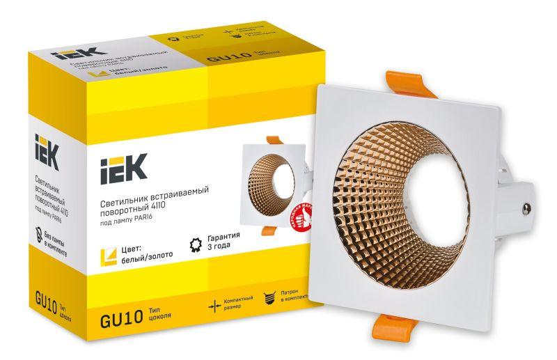 Светильник 4110 встраиваемый поворотный GU10 бел./золото пласт. IEK LT-UVB0-4110-GU10-1-K22