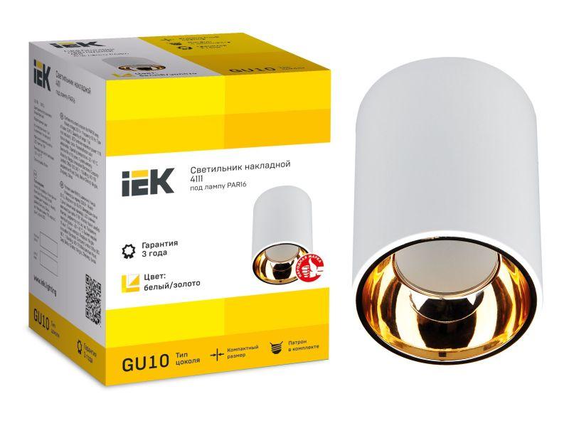 Светильник 4111 накладной поворотный GU10 бел./золото пласт. IEK LT-UPB0-4111-GU10-1-K22