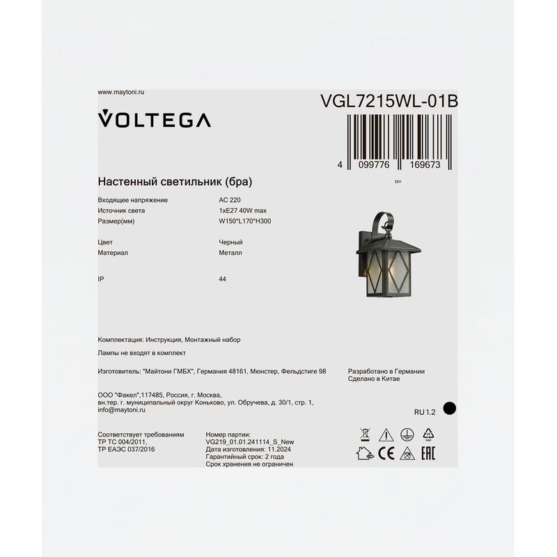 Светильник настенный (бра) Cruz 1х40Вт Е27 IP44 Voltega VGL7215WL-01B — стильное настенное бра из серии Cruz, предназначенное для наружного использования. Оно обеспечивает яркое и равномерное освещение, идеально подходящее для оформления террас, веранд или садовых участков. Благодаря своему дизайну, этот светильник не только выполняет свою основную функцию, но и служит декоративным элементом, подчёркивающим стиль и вкус владельца.