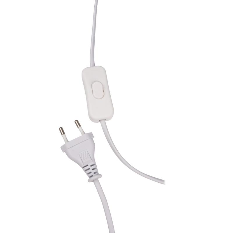 Настольный светильник с питанием от сети 220В. Материал корпуса - керамика, абажур из ткани. Цоколь Е14, может использоваться с лампами накаливания, светодиодными лампами. Длина кабеля 1,3м, выключатель на кабеле питания, цвет кабеля белый. Высота 25,5см, диаметр 13 см.