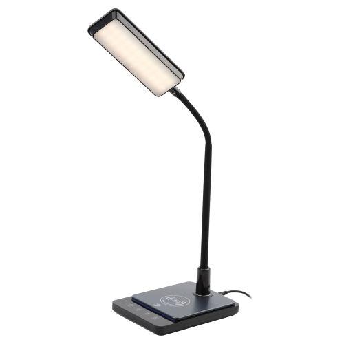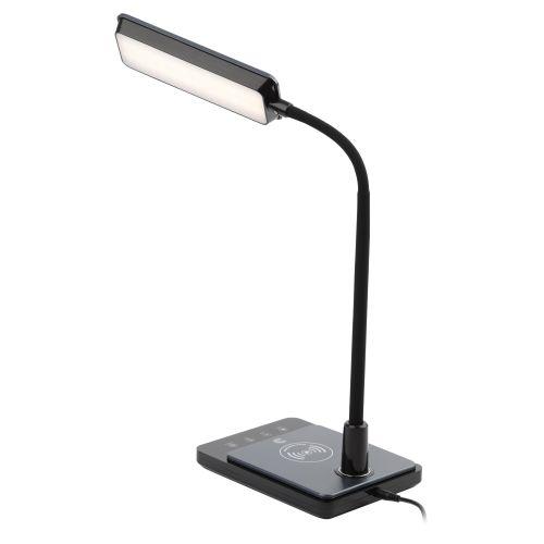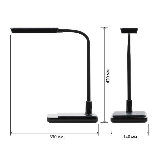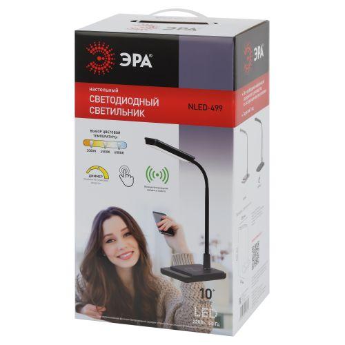 Настольный светильник ЭРА NLED-499-10W-BK со светодиодами (LED) в качестве источников света. Оснащен сенсорным управлением с возможностью выбора цветовой температуры (теплый, нейтральный или холодный свет). Плавный диммер для регулировки яркости. Светильник сохраняет выбранные настройки при включении-выключении. Направление света регулируется наклоном и поворотом плафона в любом направлении. Светильник имеет встроенный модуль Qi для беспроводной зарядки мобильных устройств. Просто положите телефон, поддерживающий функцию Qi, на основание светильника в отмеченной зоне - светильник подзарядит его удобно и быстро!