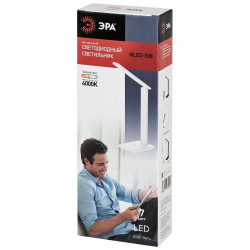 Настольный светильник ЭРА NLED-508-7W-W со светодиодами (LED) в качестве источников света в дизайне "под кожу" ,с выключателем на основании. Направление света регулируется поворотом плафона относительно стойки для максимального комфорта. Складная конструкция для оптимального хранения.