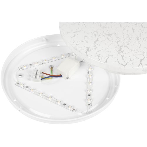 Мощность устройства составляет 24 Вт, световой поток — 1800 лм. Благодаря матовому рассеивателю свет распределяется мягко и равномерно, не создавая бликов и не утомляя глаза.