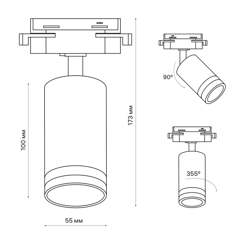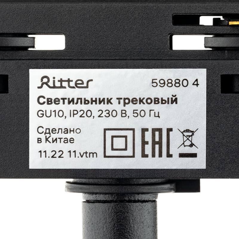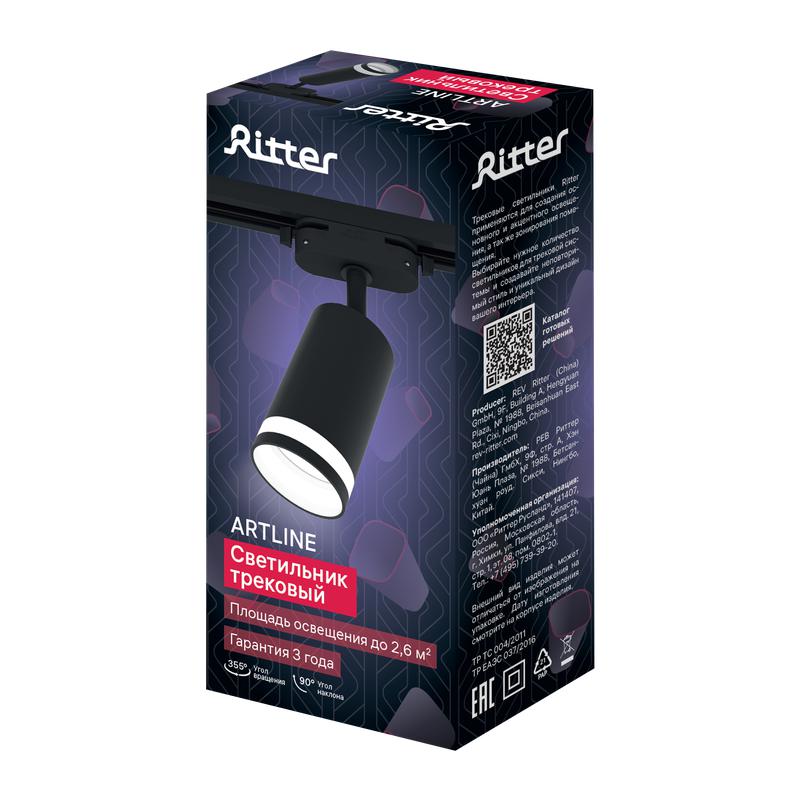Светильник трековый ARTLINE поворотный 55х55х100мм GU10 230В алюм./пластик. 4кв.м черн. Ritter 59880 4