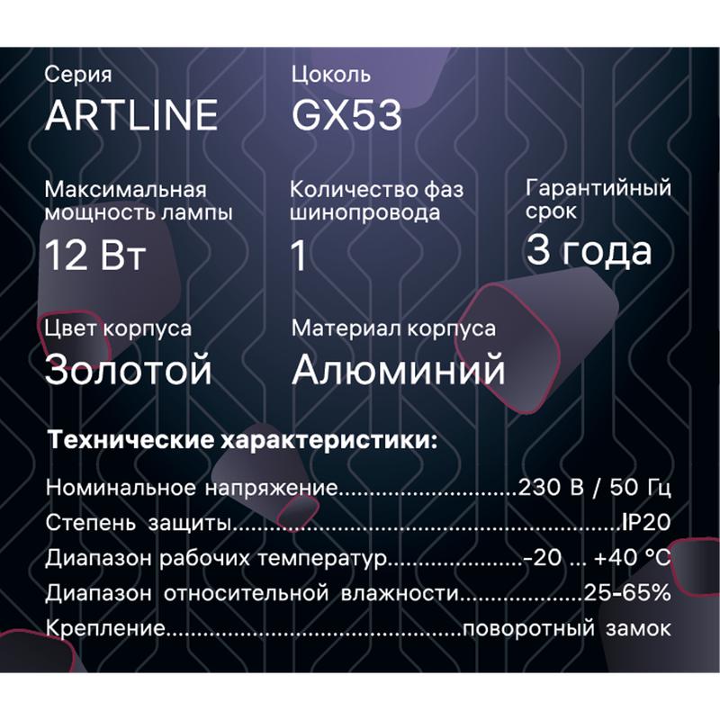 Светильник трековый ARTLINE поворотный 85х85х55мм GX53 230В алюм. 4кв.м зол. Ritter 59860 6