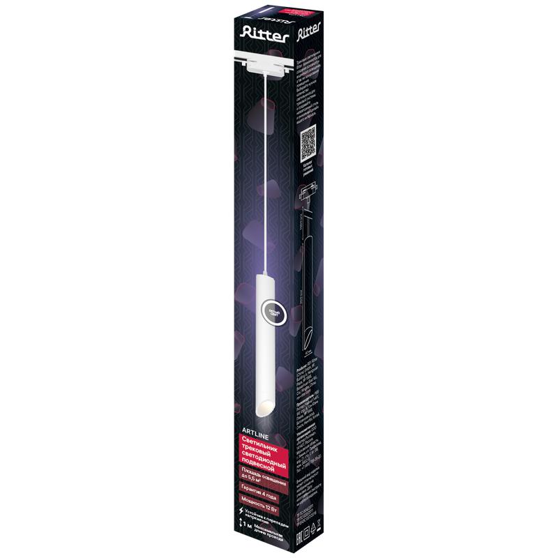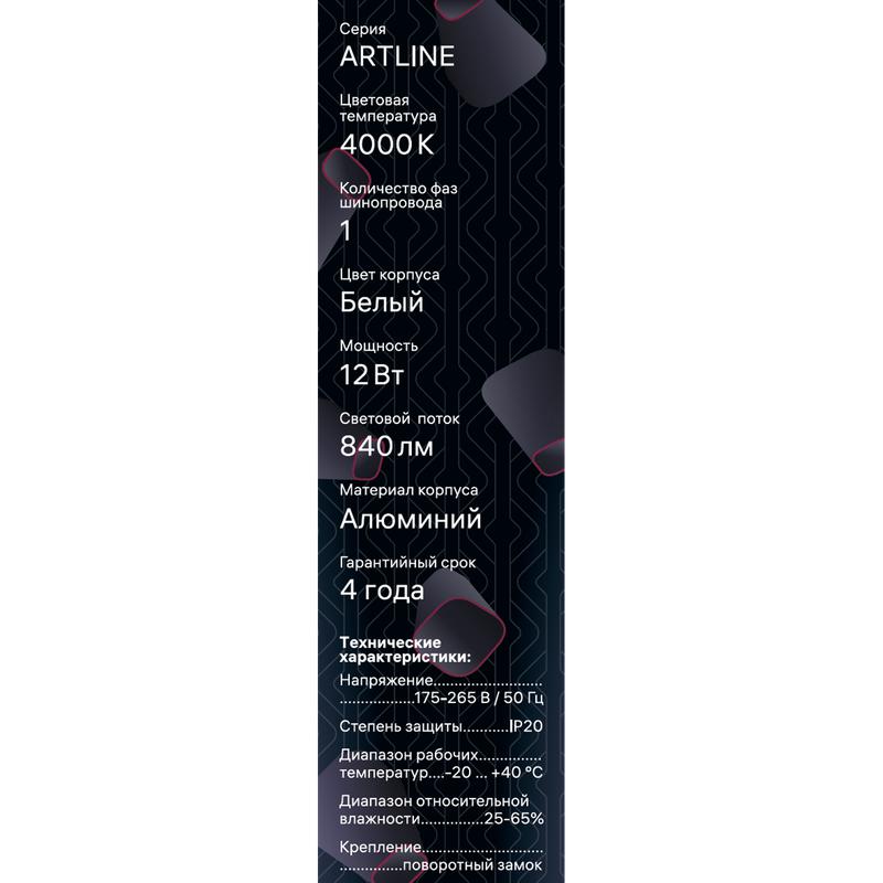 Светильник трековый подвес светодиодный ARTLINE 40х40х300мм 12Вт 840Лм 4000К 230В алюм. 5.5кв.м бел. Ritter 59706 7