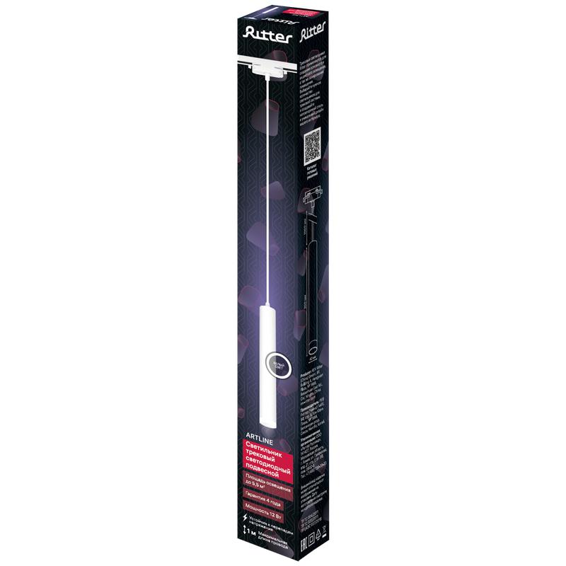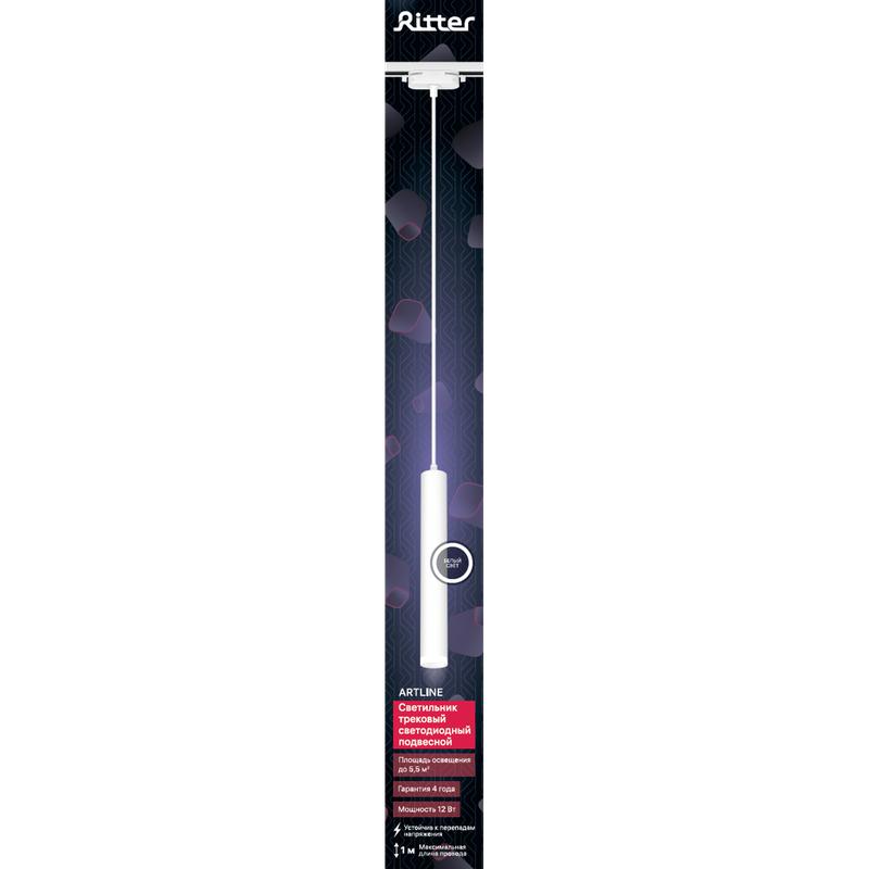 Светильник трековый подвес светодиодный ARTLINE 40х40х300мм 12Вт 840Лм 4000К 230В алюм./пластик. 5.5кв.м бел. Ritter 59708 1