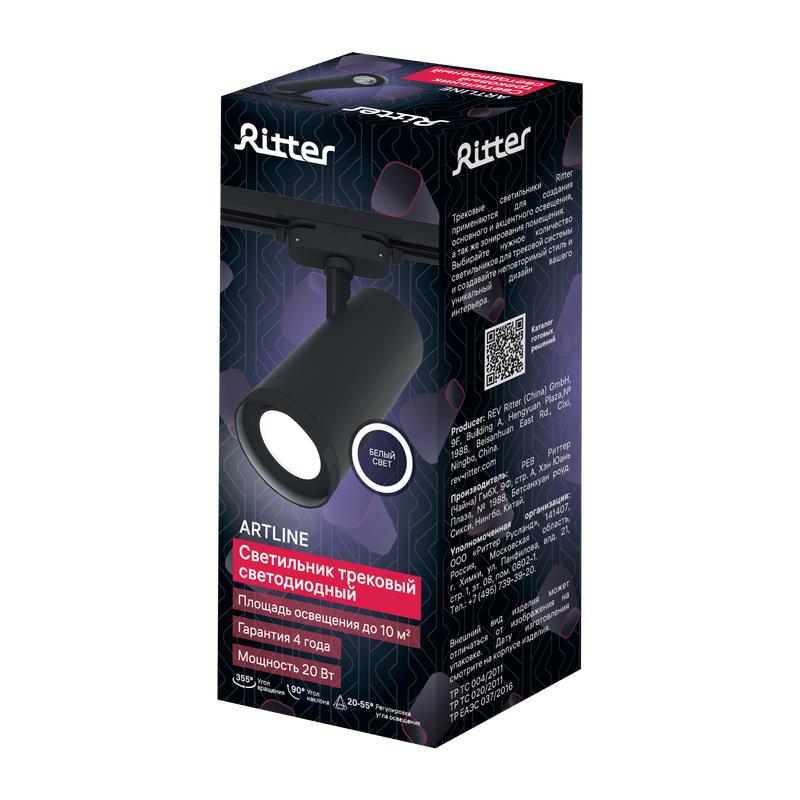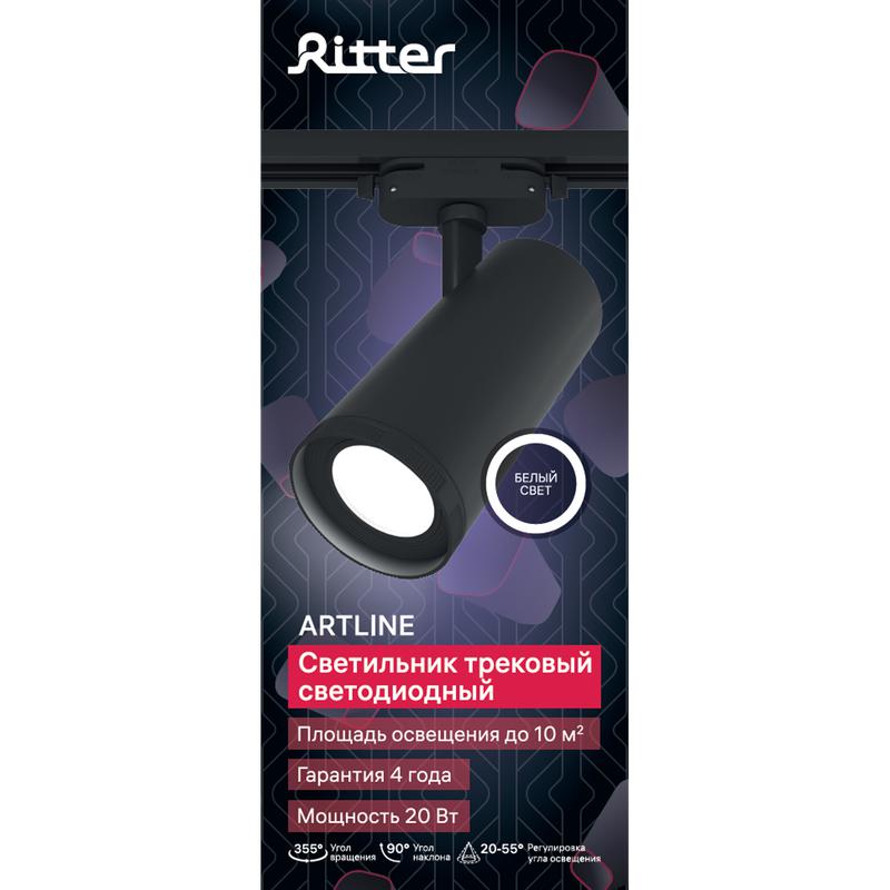 Светильник трековый светодиодный ARTLINE поворотный 70х70х150мм 20Вт 1530Лм 4000К 230В алюм. 10кв.м черн. Ritter 59741 8