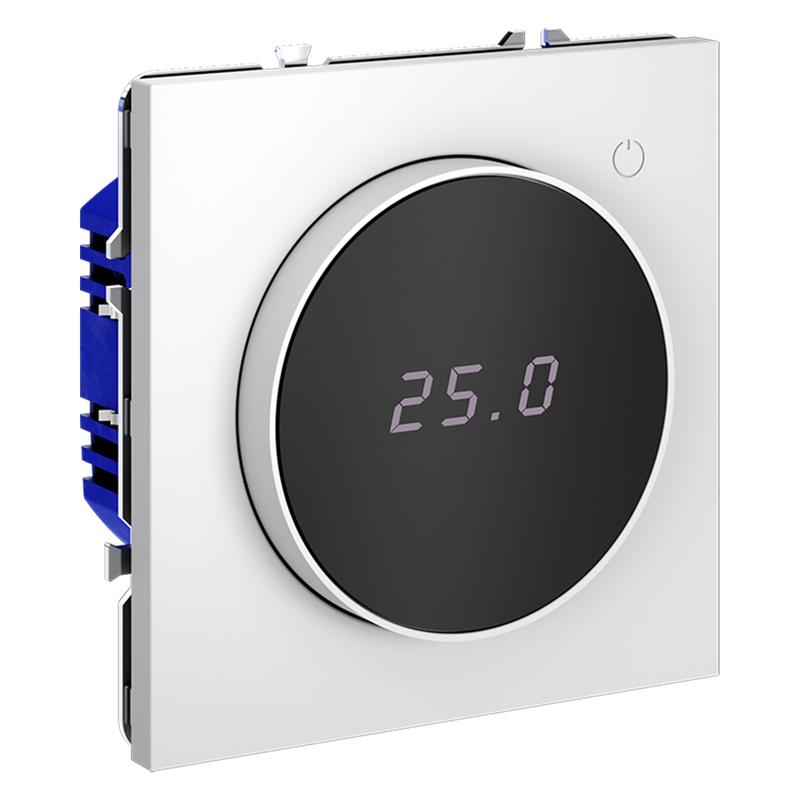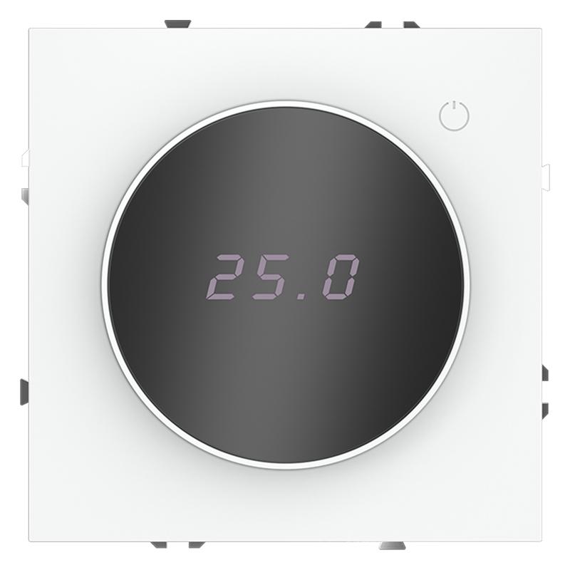 Место установки. Терморегуляторы Voltum предназначены для регулирования температуры теплого пола. Актуальны как в городских квартирах, так и в загородных дачных домах без центрального отопления. Корпус. Дизайн терморегуляторов Voltum сочетается со стилем остальных электрических устройств компании. Они совместимы со всеми рамками. Материал внешних декоративных элементов — поликарбонат. Конструктивные особенности. Терморегуляторы работают с любыми типами теплых полов и рассчитаны на нагрузку до 3500 Вт. Устройства оснащены светодиодной индикацией режима и дисплеем, на котором отображается температура поверхности пола. Красный индикатор — «подача питания на нагревательный кабель (идет процесс нагрева)», отсутствие индикации — «заданная температура достигнута». В течение 15 минут после нагрева терморегулятор переходит в интеллектуальный «спящий режим», уменьшая яркость подсветки цифр и сокращая энергопотребление. Регулировка осуществляется вращением панели управления. Терморегулятор поставляется в комплекте с механизмом из пластиковой накладки и датчиком температуры.