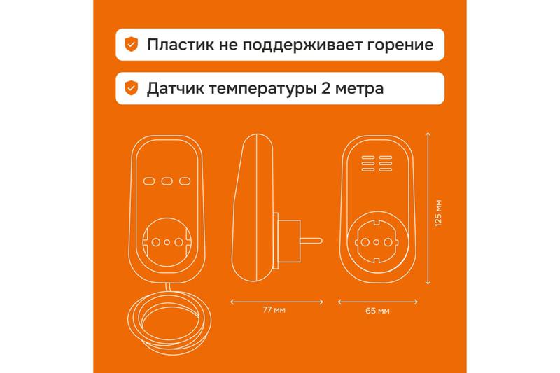 Цифровой с индикацией температуры в розетку дополнительно экономит на обогреве благодаря расширенному функционалу • Функция Отъезд: до 4-х суток поддержит экономную температуру • Счетчик потребления в кВт-часах для анализа расходов на обогрев • Регулируемая яркость экрана • Блокировка кнопок • Защита от перегрева • Защита от частых переключений силового реле • Возможность продолжить работу в случае повреждения датчика за счет аварийного режима работы