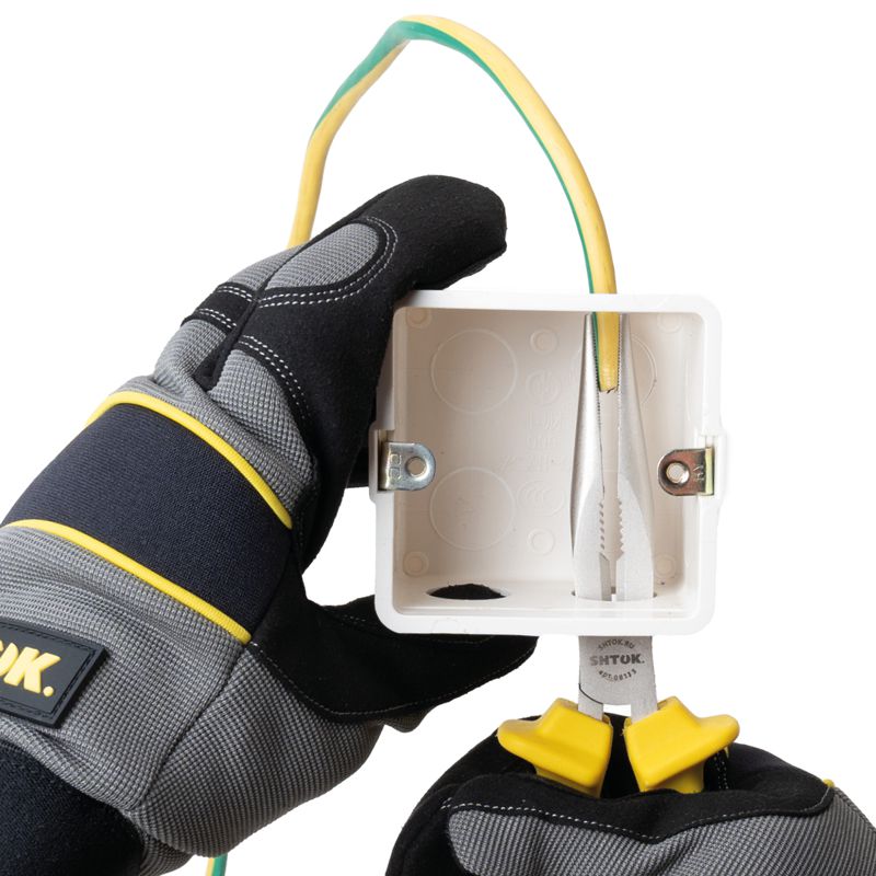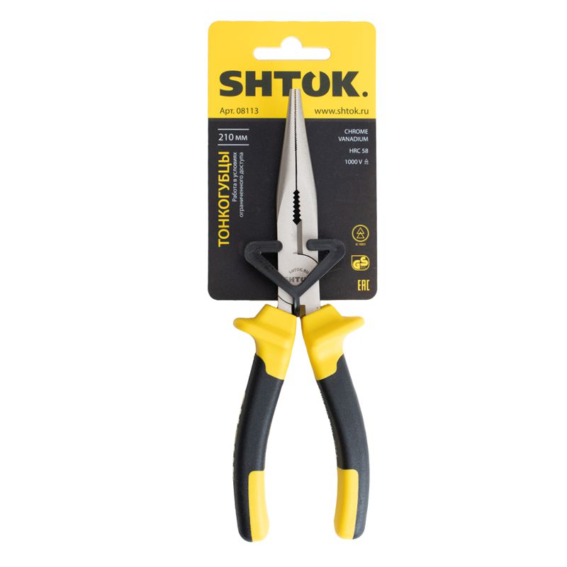 Диэлектрические тонкогубцы SHTOK 8113 представляют собой прочный и удобный для использования в труднодоступных местах шарнирно-губцевый инструмент. Тонкогубцы применяются для сгибания и разгибания пластин, проволоки, прутков. Тонкие и длинные кончики позволяют выполнять более точную работу и захватывать мелкие детали. Длина инструмента - 210 см. Хромованадиевые губки имеют никелированное покрытие, которое служит для защиты от коррозии. Двухкомпонентный материал обеспечивает комфортное применение, так как тонкогубцы не скользят в руке. Насечки на губках инструмента защищают от выскальзывания предметов из зажима.