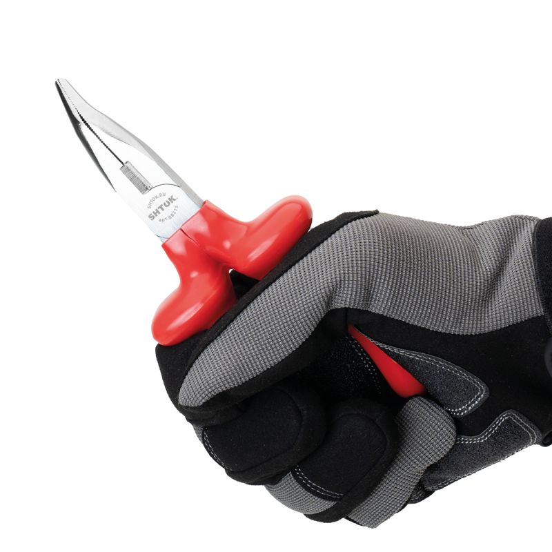 SHTOK Тонкогубцы изогнутые 160 мм, представляют собой прочный и удобный для использования в труднодоступных местах шарнирно-губцевый инструмент. Тонкогубцы изогнутые применяются для сгибания и разгибания пластин, проволоки, прутков. Тонкие и длинные кончики позволяют выполнять более точную работу и захватывать мелкие детали. Длина инструмента - 160 см.
