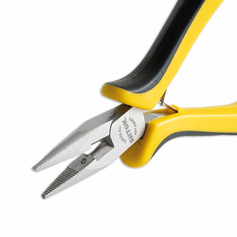 Нескользящие ручки мини тонкогубцы SHTOK 120 мм 08403 обеспечиваю надежность захвата и удержания инструмента.