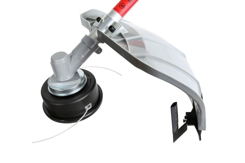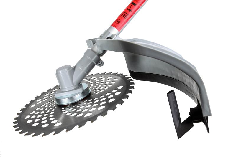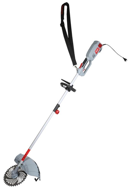 Ширина полосы обработки за один проход составляет 42 см. Возможна установка разных типов насадок: леска (2 мм) для выравнивания газонов или диск 40TR с твердосплавными победитовыми напайками для удаления мелкой поросли кустарников. D-образная ручка облегчает маневрирование на клумбах и участках, где много препятствий. Электротриммер укомплектован ремнем на плечо. Его можно заменить на ранцевый, который равномернее распределяет нагрузку.
