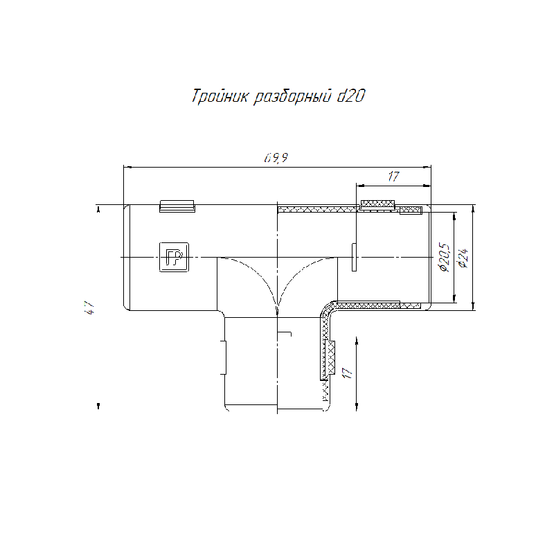 Предназначен для соединения гофрированных труб или гладких труб из пластика, образуя Т-образное ответвление, что позволяет придать более эстетичный внешний вид местам соединения. Состоит из двух частей соединяющихся друг с другом. Благодаря разъёмному корпусу, имеет возможность установки на уже смонтированную трассу.