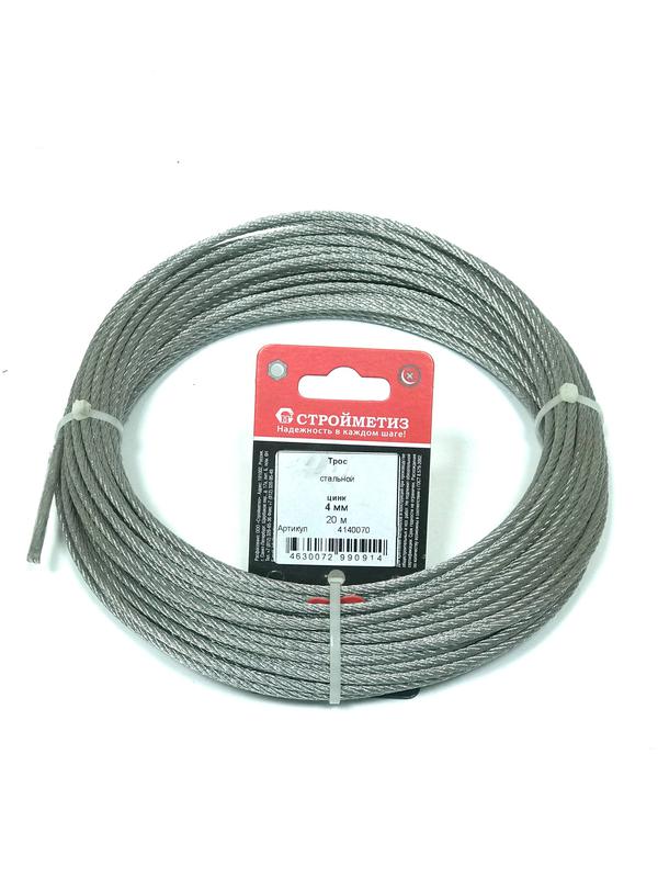 Трос стальной 4.0мм DIN 3055 цинк (уп.20м) подвес СТРОЙМЕТИЗ 4140070