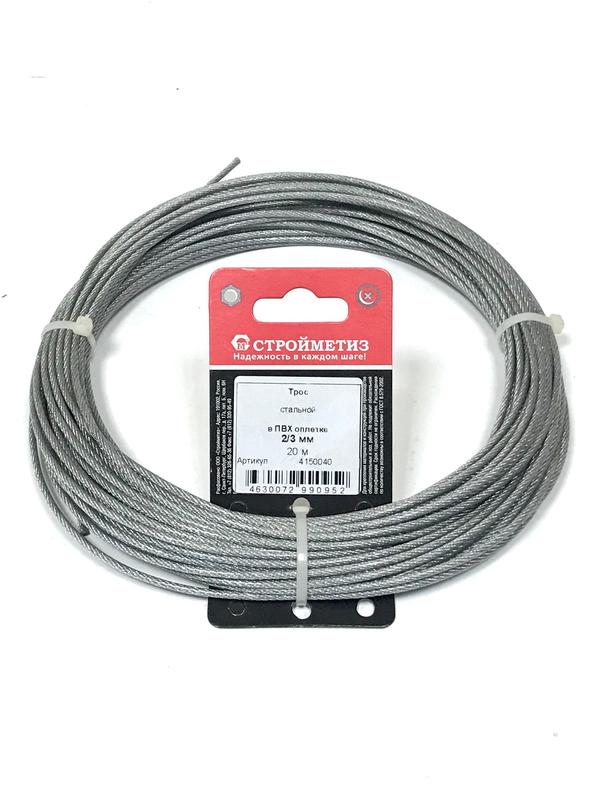 Трос стальной в оплетке ПВХ М2/3мм (уп.20м) подвес СТРОЙМЕТИЗ 4150040