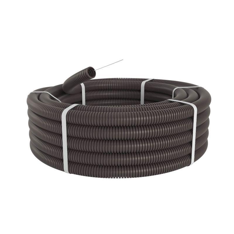 Номинальный диаметр 12 мм (это означает, что внутренний диаметр трубы - 12,2 мм, а наружный - 15,8 мм). Специальная протяжка, входящая в комплект, облегчает прокладку кабеля по трубе. Цвет трубы - темно-серый.