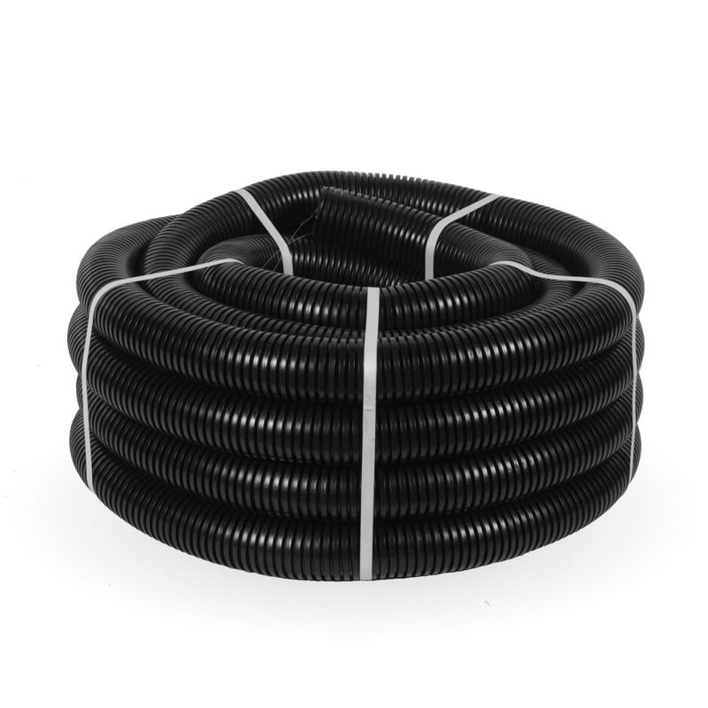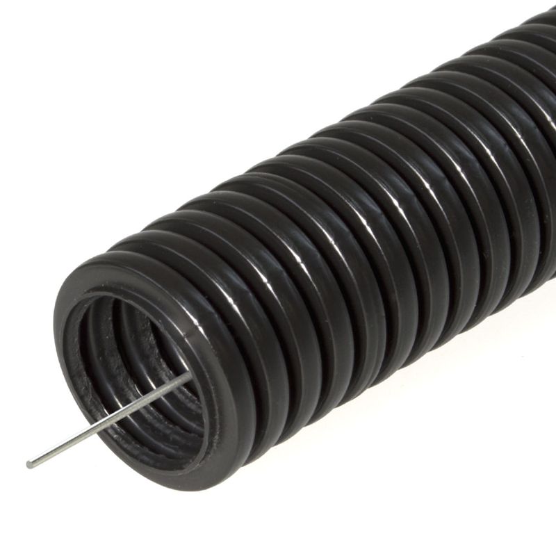 Труба гофрированная ПНД тяжелая d50мм с протяжкой 750 Н безгалоген. (HF) стойкая к УФ черн. (уп.15м) Промрукав PR.025041