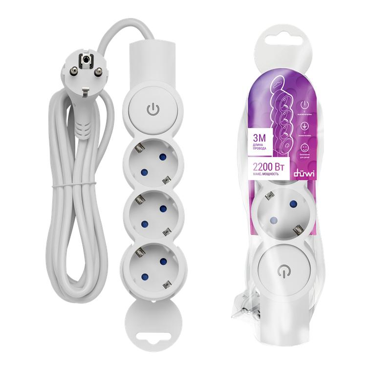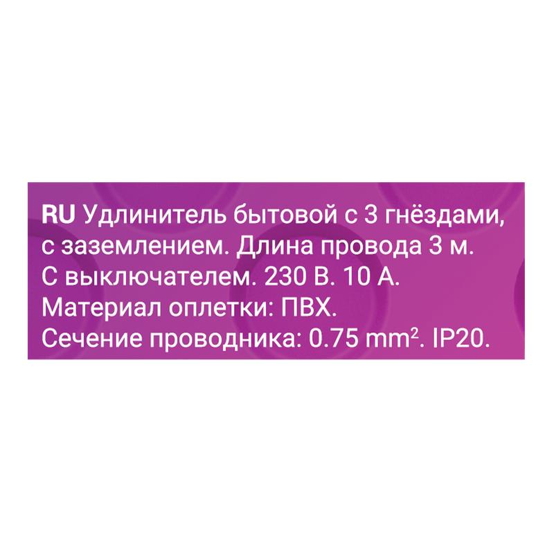 Удлинитель 3х3м с заземл. 3Gх0.75 с выкл. защ. шторки REV 32008 3