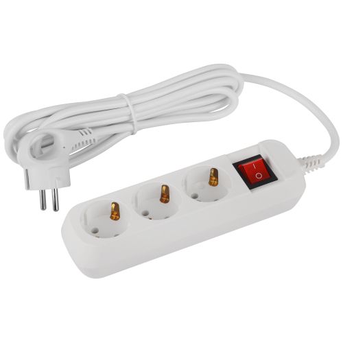 Удлинитель электрический Эра GREENLINE UDL-16-330-ES с заземлением, с выключателем, на 3 розетки, провод 3м ПВС 3x1мм2. Рассчитан на максимальную мощность 16А/3500 Вт. Удлинитель станет Вашим надежным помощником, если любимые электроприборы находятся далеко от розеток. Корпус выполнен из ударопрочного и негорючего пластика (полипропилен). Вилка обеспечена кольцом для удобного извлечения ее из розетки. Модель удлинителя на 16А позволяет подключить бытовые приборы общей нагрузкой до 3500Вт.