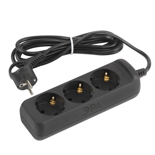 Удлинитель электрический Эра UX-3e-5m-B с заземлением, черный, 3 розетки. Провод ПВС, 3x0,75мм2, 5 м. Рассчитан на максимальную мощность 10А/2200 Вт. Удлинитель Эра станет Вашим надежным помощником, если Ваши любимые электроприборы находятся далеко от розеток. Провод в удлинителях Эра сделан из 100% меди, что делает его абсолютно пожаробезопасным. Корпус выполнен из ударопрочного и негорючего пластика (полипропилен). Вилка обеспечена кольцом для удобного извлечения ее из розетки. Модель удлинителя на 10А позволяет подключить бытовые приборы общей нагрузкой до 2200Вт. Дизайн удлинителя разработан в России командой Эра Style.