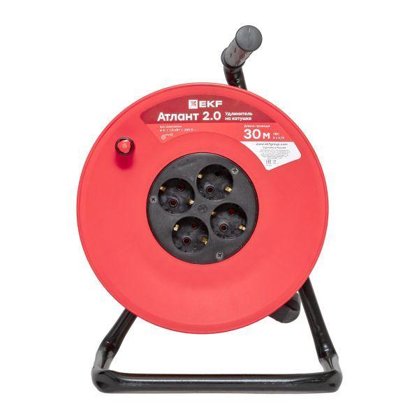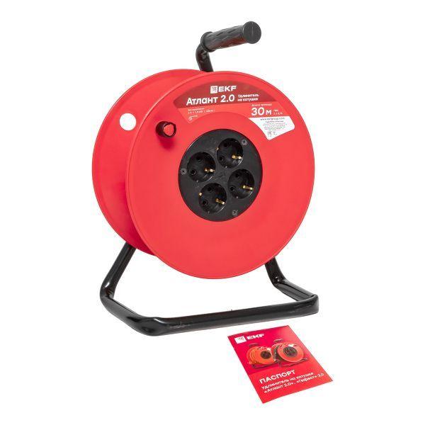 Удлинитель на катушке 4х30м без заземл. 6А IP20 Атлант 2.0 1.3кВт ПВС 2х0.75 PROxima EKF UKA02-06-275-4-30