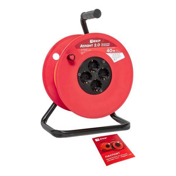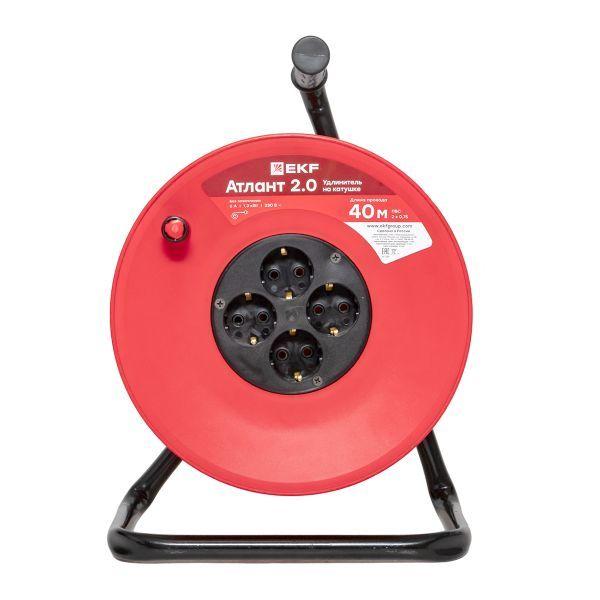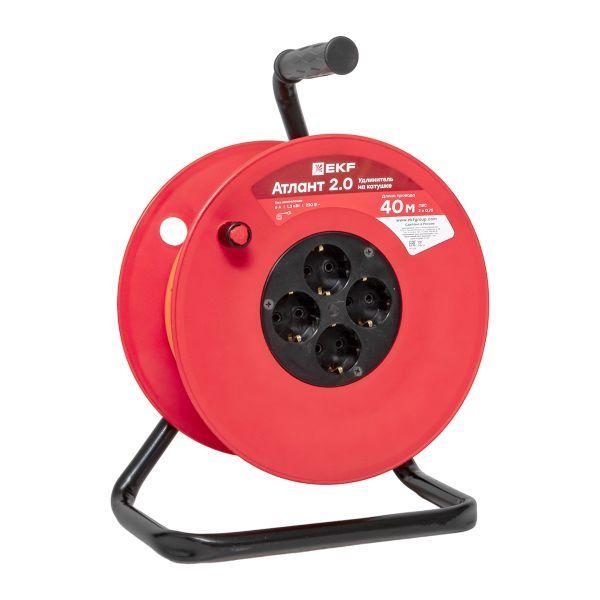 Удлинитель на катушке 4х40м без заземл. 6А IP20 Атлант 2.0 1.3кВт ПВС 2х0.75 PROxima EKF UKA02-06-275-4-40