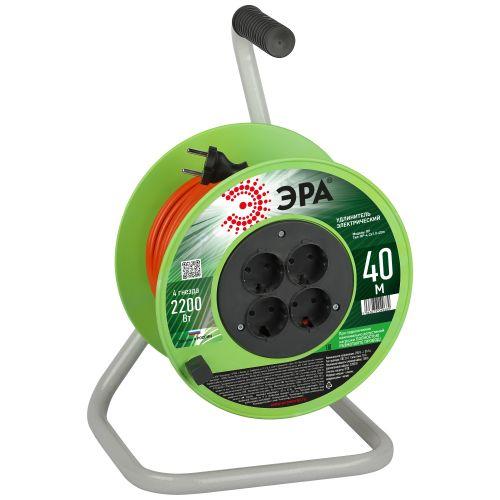 Удлинитель силовой на пластиковой катушке ЭРА RP-4-2x1.0-40m без заземления, 4 розетки, провод ПВС 2х1м2, 40 м. Мощность 10А/2200Вт. Используется для работы на строительных площадках или дачных участках. Удобен при работе с приборами, находящимися удаленно от стационарной розетки. Например, газонокосилки, электрические, пилы, триммеры или электродрели. Провод в удлинителях Эра сделан из 100% меди, что делает его абсолютно пожаробезопасным. Рама удлинителя сделана из высокопрочной стали, а пластиковой корпус выполнен с применением негорючих добавок.
