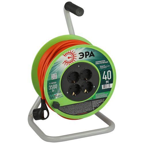 Удлинитель силовой на пластиковой катушке ЭРА RP-4e-3x1.5-40m с заземлением, 4 розетки, провод ПВС 3х1,5м2, 40 м. Мощность 16А/3500Вт. Используется для работы на строительных площадках или дачных участках. Удобен при работе с приборами, находящимися удаленно от стационарной розетки. Например, газонокосилки, электрические, пилы, триммеры или электродрели. Провод в удлинителях Эра сделан из 100% меди, что делает его абсолютно пожаробезопасным. Рама удлинителя сделана из высокопрочной стали, а пластиковой корпус выполнен с применением негорючих добавок.