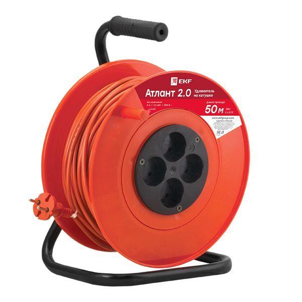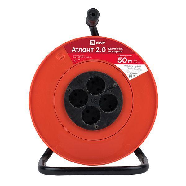 Удлинитель на катушке 4х50м без заземл. 6А IP20 Атлант 2.0 1.3кВт ПВС 2х0.75 PROxima EKF UKA02-06-275-4-50