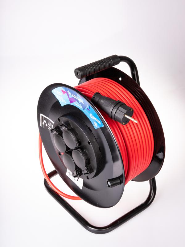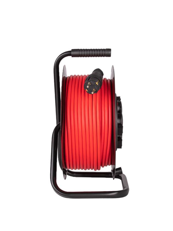 Высокомощный удлинитель на катушке 50 метров на 4 гнезда с влагозащитой IP44 и увеличенным сечением кабеля. Выдержит даже сварочный аппарат, создан для работы при любой погоде. Максимальная мощность подключения 3500 Вт (16А). Кабель ПВС 3х2,5мм (с заземлением). Сечение провода 2,5 мм – для того чтобы инструмент не терял мощность и скорость оборотов на длинном кабеле. Так же подходит для мощных приборов во влажных помещениях и при плохой погоде. Автоматический предохранитель выключит питание при опасном перегреве от нагрузки сверх допустимой нормы. Удачный выбор для профессионального строительства. Прочная стальная рама. Произведено в России.