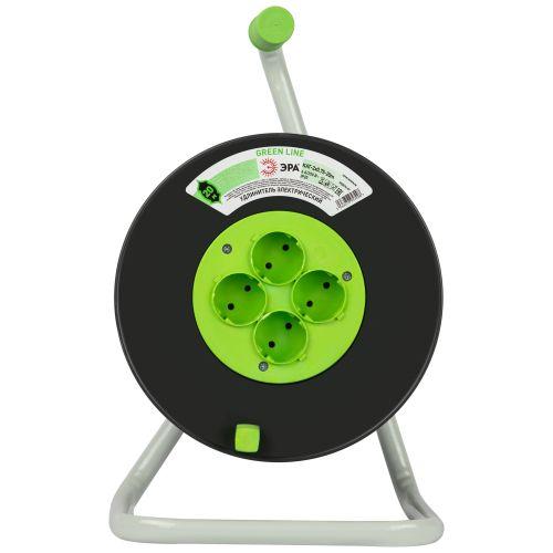 Удлинитель силовой ЭРА GREEN LINE на пластиковой катушке KAT-2x0.75-20m, 4 розетки без заземления. Провод ПВС 2х0,75мм2, 20м. Мощность 6А/1300Вт. Используется для работы на строительных площадках или дачных участках. Удобен при работе с приборами, находящимися удаленно от стационарной розетки. Например, газонокосилки, электрические, пилы, триммеры или электродрели. Рама катушки сделана из высокопрочной стали, а пластиковой корпус катушки выполнен с применением негорючих добавок.