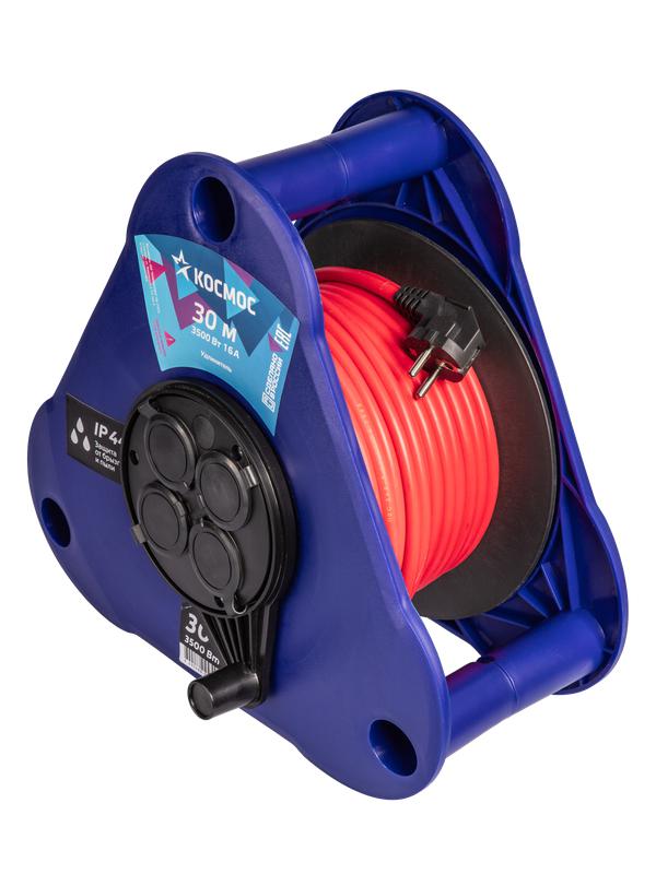 Удлинитель на треугольной катушке 4х30м 16А IP44 УКП 3500Вт ПВС 2х2.5 КОСМОС YKTKsm30m-4g(2.5)IP