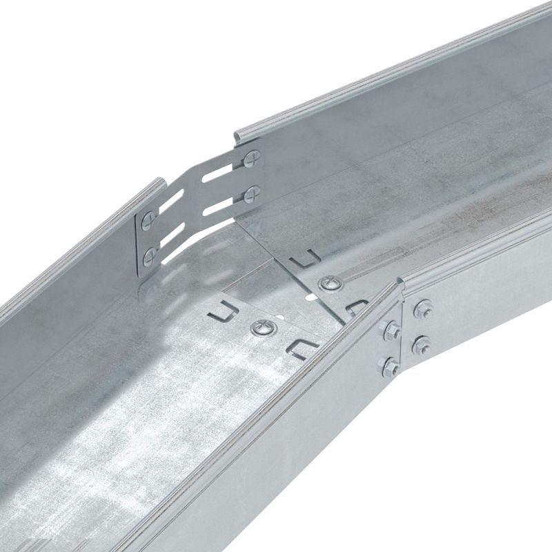 Широкий выбор аксессуаров для линейки листовых лотков "S5 Combitech" позволяют строить трассы любой сложности. Горизонтальный изменяемый угол – это элемент, применение которого позволяет создавать плавные повороты трассы под углом 0-45o в горизонтальной плоскости. Конструктив аксессуара предотвращает повреждение кабеля при прокладке.