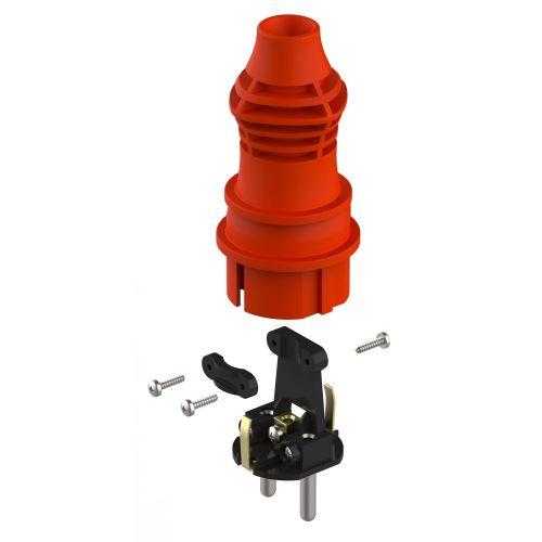 Прямая красная каучуковая вилка с заземлением из серии каучуковых разъёмов ЭРА российского производства. Имеется аналог в чёрном цвете. Рассчитана на нагрузку до 16 А и позволяет подключать кабель КГ сечением до 3x2.5 мм2.