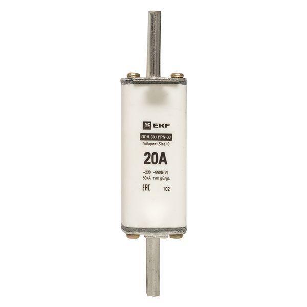 Плавкая вставка ППН-33 160/ 20А габарит 0 EKF. Предохранители плавкие ППН EKF, укомплектованные плавкими вставками типа gG/gL, предназначаются для защиты кабельных линий и промышленных электроустановок от токов перегрузки и короткого замыкания. Предохранители применяются в электрических сетях переменного тока частотой 50 Гц с напряжением до 660В. Применяются для крепления в распределительных и вводно-распределительных устройствах. Предохранители плавкие ППН могут устанавливаться в основание с держателем, а также в специально предназначенные рубильники. В комплект поставки предохранителей плавких ППН основание с держателем не входит и приобретается отдельно.