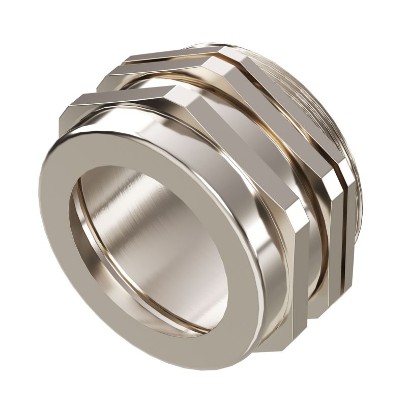 Кабельный ввод М72, изготавливается из никелированной латуни, снабжен контргайкой для фиксации, обеспечивает степень защиты IP65, для диаметра кабеля 42-52 мм.