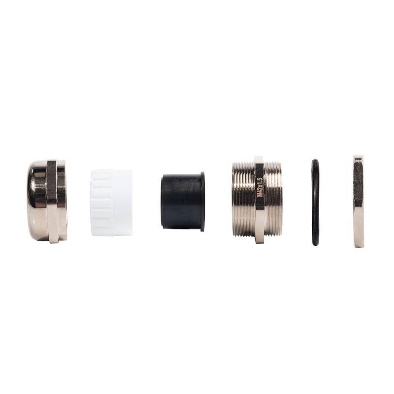 • Для герметичного ввода–вывода кабелей и проводов в корпусах электрощитового оборудования • Материал: • гайка, корпус, накидная гайка: никелированная латунь • прижимная вставка: нейлон 6.6 по UL94 V2 • уплотнительная вставка и кольца: неопрен • Температура эксплуатации: от -40 °С до +100 °С, кратковременно +120°С • Степень защиты IP68 • Тип резьбы: метрическая по EN 60423 • Стойкие к синтетическим маслам и всем видам топлива • Благодаря пластмассовой вставке и резиновому кольцу обеспечивают герметичный обхват кабеля • Обладают особой прочностью, долговечностью и устойчивостью к агрессивным воздействиям внешней среды • Защитная мембрана предотвращает попадание пыли • Инструмент для монтажа отверстий: • системы гидравлические для пробивки отверстий: • ПГПО-60 • ПГПО-60А • ПГПО-115 • прессы гидравлические для пробивки отверстий: • ПГРО-60А • ПГРОу-60А • ПГРОп-60А • ПГАПО-60А • матрицы МПО для пробивки круглых отверстий, наборы перфоформ: НМПО-PG, НМПО-MG