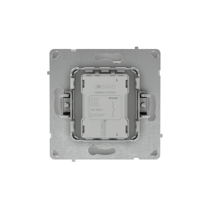 Одноклавишный выключатель применяется для управления контуром освещения. Выключатель предназначен для скрытого монтажа в стену. Характеристики устройства: номинальное напряжение 250 В, номинальный ток 16 А. Материал: металл, поликарбонат. Пластиковые элементы имеют цвет "Белый песок". Для декоративного оформления электроустановочных изделий используются рамки серии "KANT".
