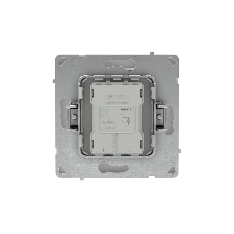 Одноклавишный выключатель с подсветкой применяется для управления контуром освещения. Выключатель предназначен для скрытого монтажа в стену. Характеристики устройства: номинальное напряжение 250 В, номинальный ток 16 А. Подсветка имеет белый цвет, предусмотрена для легкой идентификации устройства в темном помещении. Материал: металл, поликарбонат. Пластиковые элементы имеют цвет "Белый песок". Для декоративного оформления электроустановочных изделий используются рамки серии "KANT".
