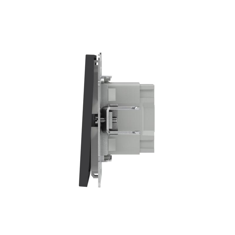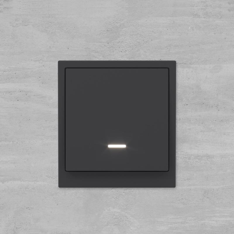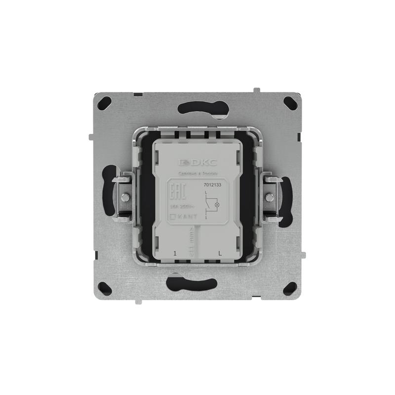 Одноклавишный выключатель с подсветкой применяется для управления контуром освещения. Выключатель предназначен для скрытого монтажа в стену. Характеристики устройства: номинальное напряжение 250 В, номинальный ток 16 А. Подсветка имеет белый цвет,предусмотрена для легкой идентификации устройства в темном помещении. Материал: металл, поликарбонат. Пластиковые элементы имеют цвет "Черный уголь". Для декоративного оформления электроустановочных изделий используются рамки серии "KANT".