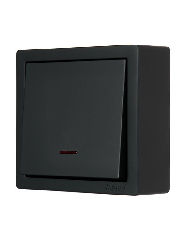 Выключатель 1-кл. ОП LETO с индикацией черн. бархат LEZARD 752-4200-111