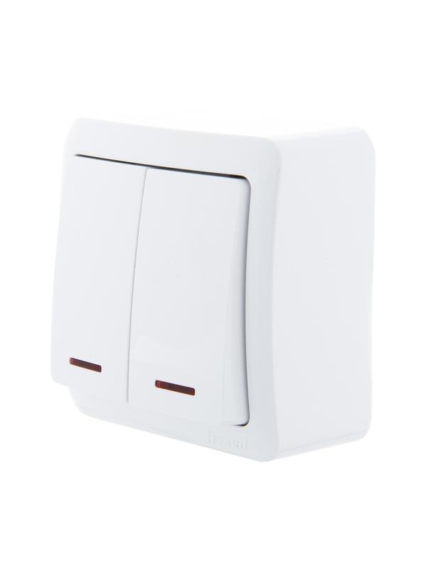 Выключатель 2-кл. 1п ОП Viola 10А IP20 с подсветкой бел. LEZARD 751-0200-112