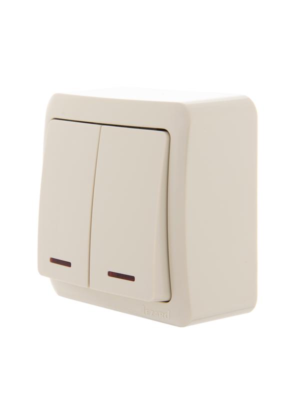 Выключатель 2-кл. 1п ОП Viola 10А IP20 с подсветкой крем. LEZARD 751-0300-112