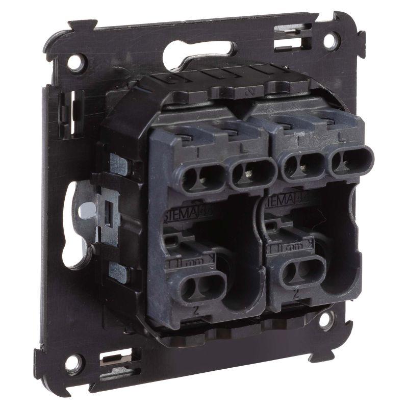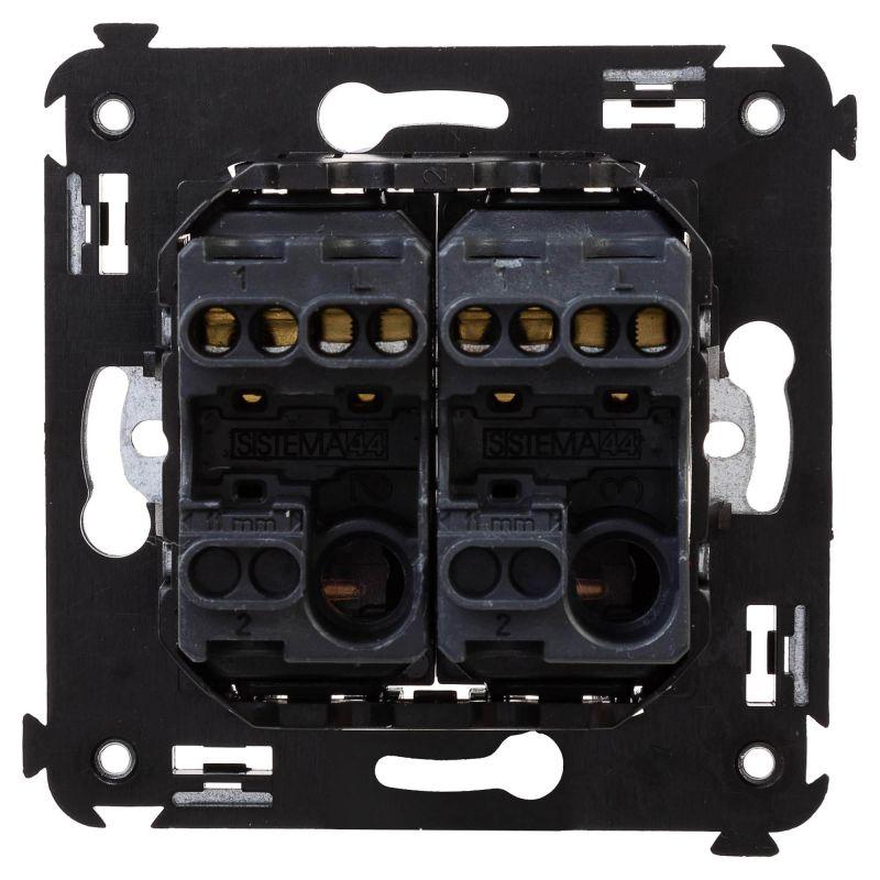 Задача двухклавишного выключателя – управление двумя контурами освещения из одной точки. Выключатели из серии ЭУИ "Avanti" предназначены для скрытого размещения в стене. Номинальное напряжение выключателя – 230 В, номинальный ток – 16 А.