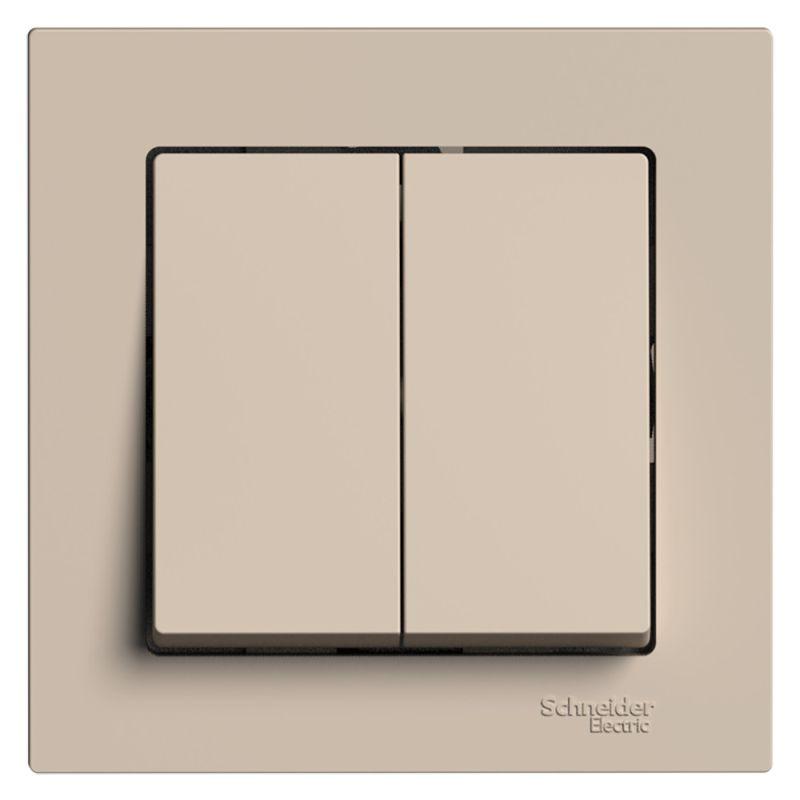 Выключатель Systeme Electric (ранее Schneider Electric) серии AtlasDesign (в сборе, цвет песочный) 2-клавишный подходит для сетей 250 В, на ток 10 А. Двухклавишный выключатель позволяет управлять двумя источниками света с одной точки. Лицевые детали из качественного ABS-пластика, устойчивого к царапинам и УФ-излучению. Изделие поставляется в комплекте с рамкой того же цвета. Усиленные прямые монтажные лапки для лучшей фиксации механизма в монтажной коробке.