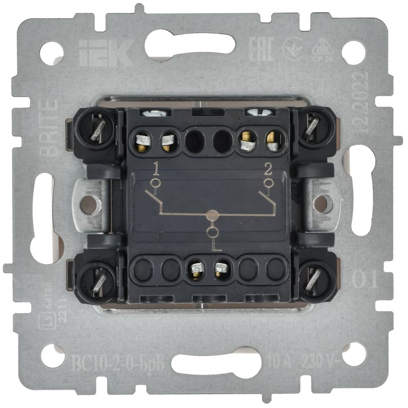 Выключатель 2-кл. Brite 10А ВС10-2-0-БрБ механизм бел. IEK BR-V20-0-10-K01-PRO
